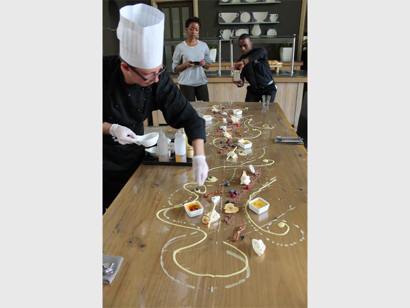 PHOTO 14 FRESHLY MADE: Executive chef for the Forum Company, Arno Boshoff, makes a delicious dessert directly onto the table.