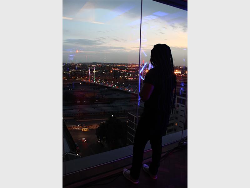 WHAT A VIEW: A guest admires the breathtaking view of Jozi from the new bar and club, Thirteen, in Braamfontein, where the launch of KFC’s new Popping Candy Krusher was held.