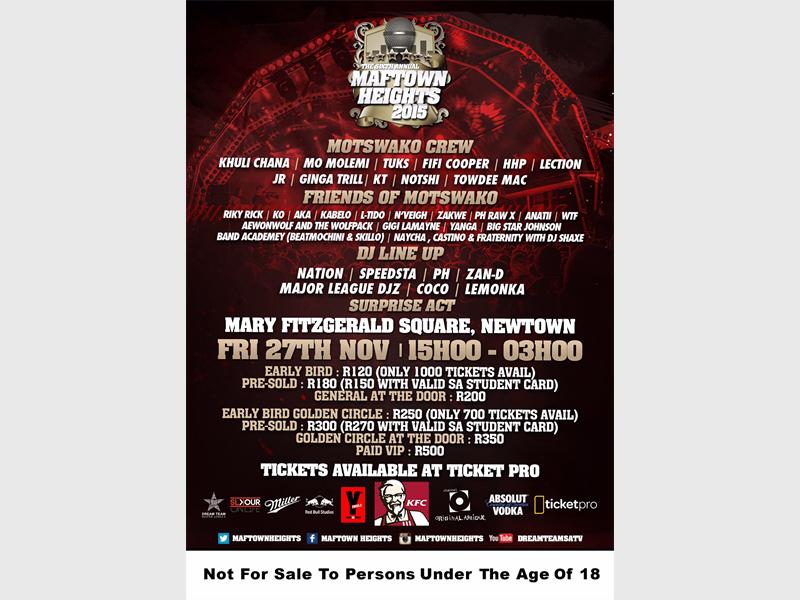 NEWTOWN - MAFTOWN Heights Music Festival, the biggest event in the South African hip-hop calendar, is set to take place on 27 November at Mary Fitzgerald Square in Newtown.