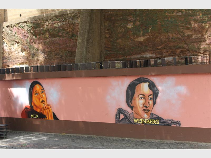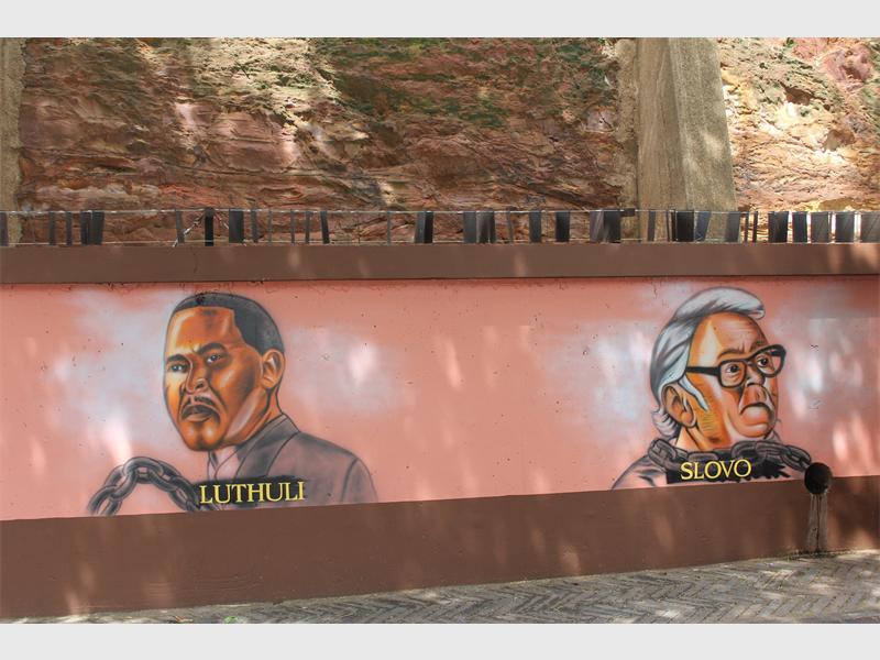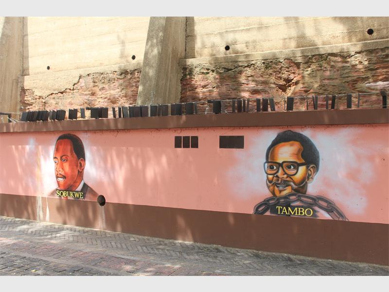 Ghandi, Albertina Sisulu, Lilian Ngoyi, Fatima Meer, Eli Weinberg, Albert Luthuli, Joe Slovo, Robert Sobukwe and Oliver Tambo are just some of the faces painted on these historically significant walls.