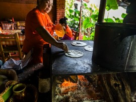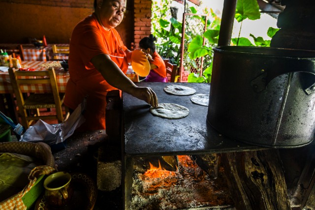 A Mexican woman making tortillas in the original way on wood fire stove in rural Nayarit Mexico. Image by © Matt Mawson/Corbis
