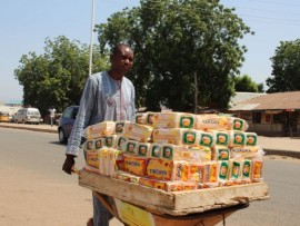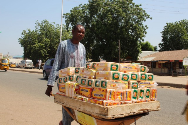 A man seen pushing a cart filled with bread for sale on the street of Yola, Adamawa State in Nigeria. Photo by Image by © next24online/NurPhoto/Corbis