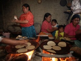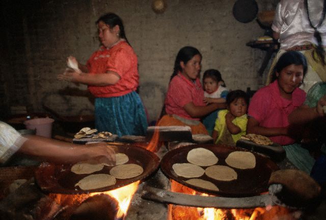 A group of Purepecha women make tortillas and bake them on fires. Mexico is famous for their traditional tortillas. Image by © Danny Lehman/Corbis