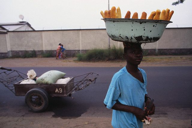 In Kinshasa, Democratic Republic of the Congo, they have creative ways of delivering bread to your doorstep. Image by © Ed Kashi/VII/Corbis