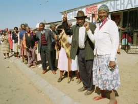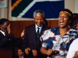 The previous national flag which had flown over South Africa since 31 May 1928 was lowered just before midnight and the new flag was raised. It was flown on a plane across the sky on 10 May 1994 when Mandela was inaugurated as the president. Take a look at pictures from the election campaign and voting day: