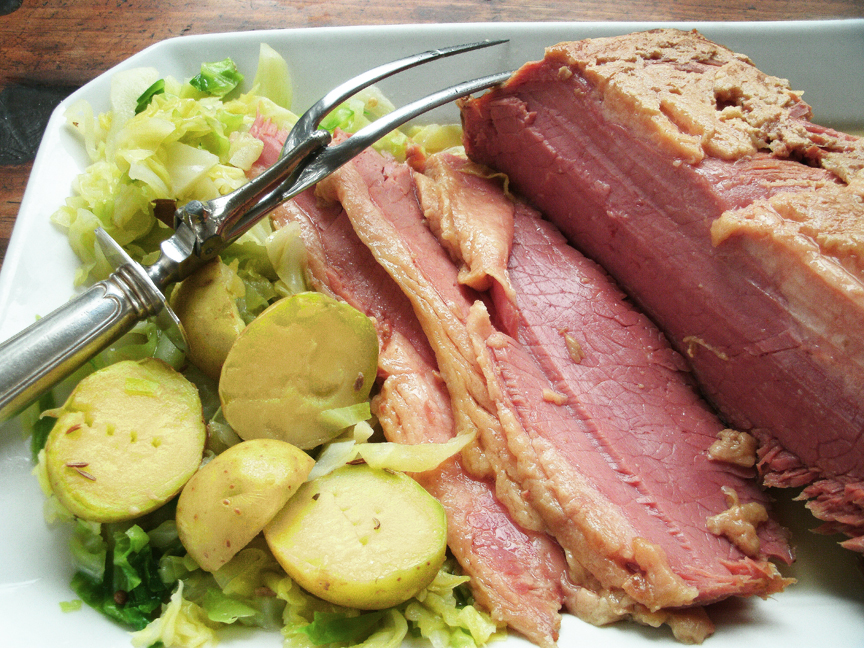 Corned beef is essentially beef cured in a salt brine, with some pickling spices for added flavour. It gets its name “corn” from an old English word for grain, or small pieces of hard things like rock salt (“corns of salt”) with which the meat was cured.