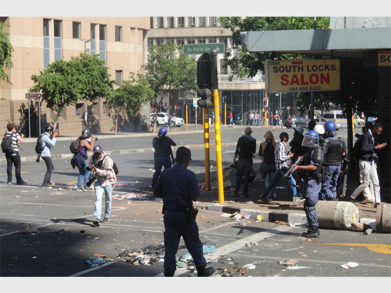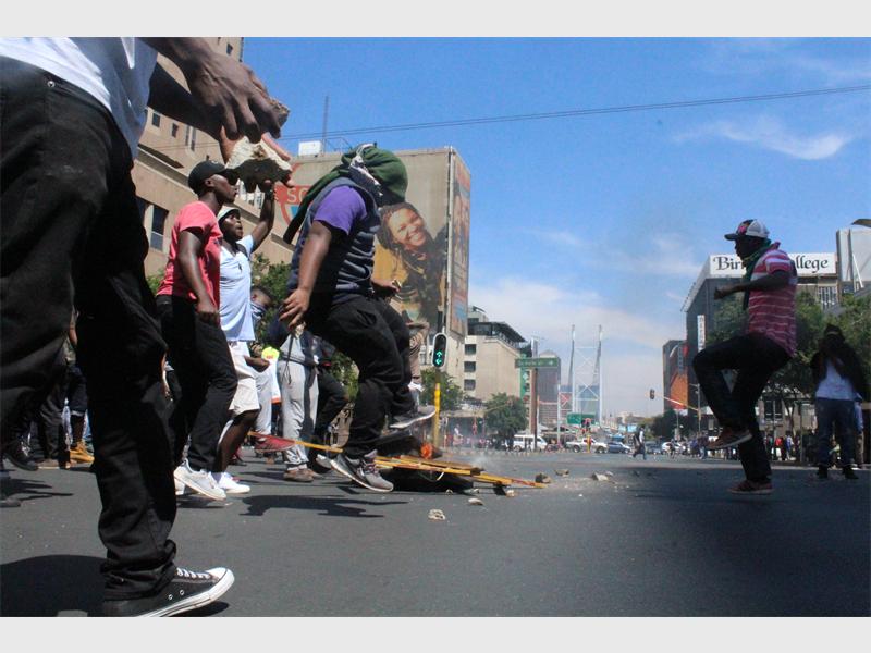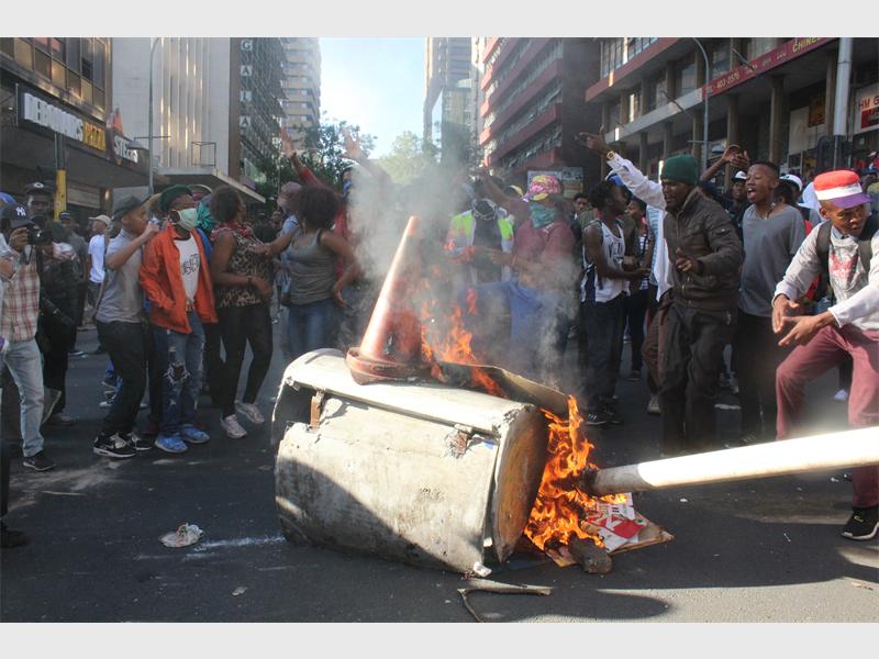 The Wits University students protest brought Braamfontein to a complete standstill as they spilled into the streets with the police hot on their heels.