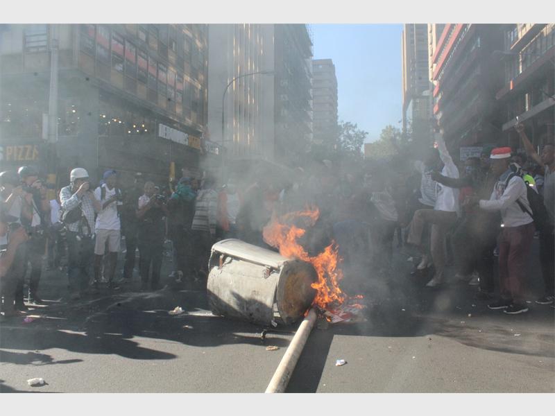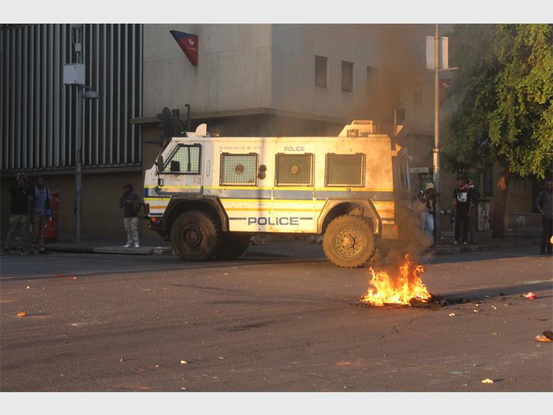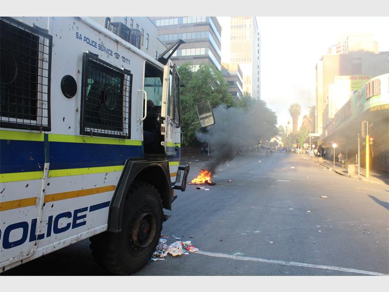 BRAAMFONTEIN - A bus was torched and a store looted after police and students violently clash in the Streets of Braamfontein.
