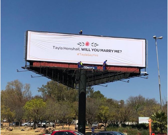 #SheSaidYes: A billboard in Sandton displaying a proposal has warmed hearts