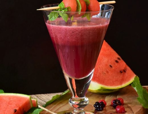 If you’re enjoying this one with a friend, show some extra pizzaz by using the watermelon half-shells as your groovy mocktail ‘glasses’, add a wriggly straw and a cocktail umbrella and you’re in Hawaii baby!