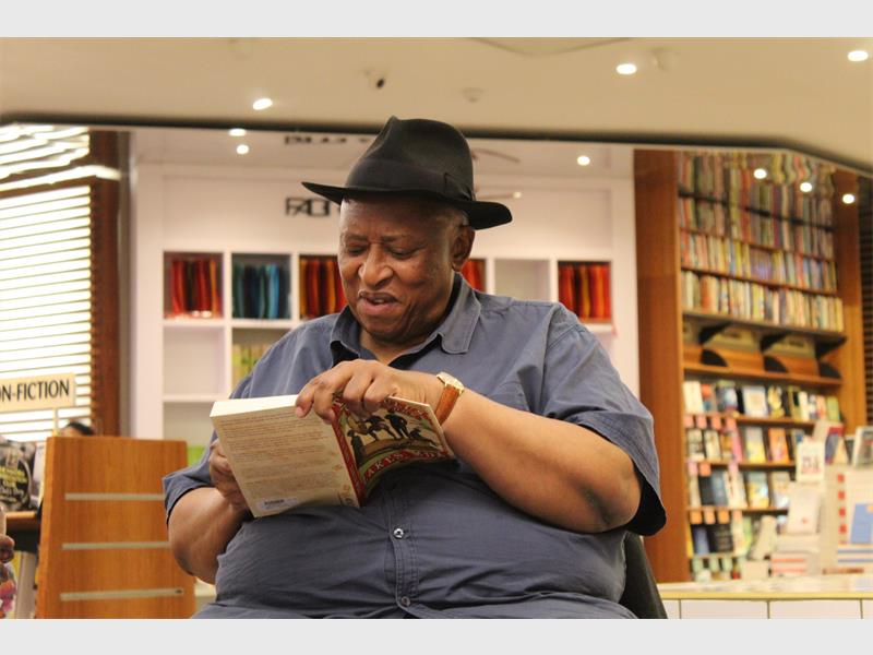 Zakes Mda signs a copy of his new book, The Zulus of New York. Photo: Itumeleng Komana