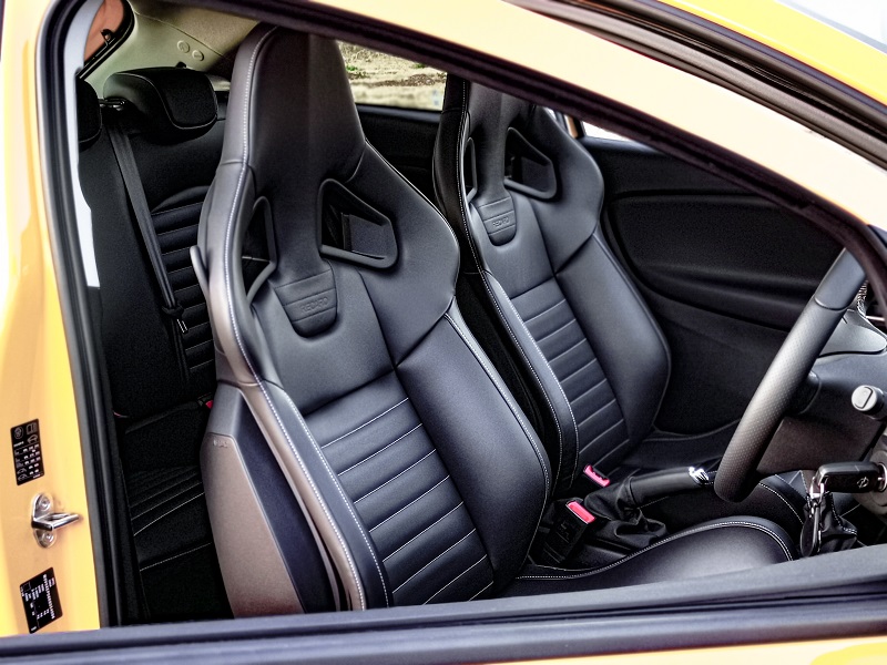 The interior receives a similarly sporty look, with wonderful Recaro bucket seats, a heated sports steering wheel and an impressive list of standard features such as cruise control, touch-screen infotainment system with Android Auto and Apple CarPlay, a tyre pressure monitor, traffic sign recognition, automatic wipers and lights to name a few.