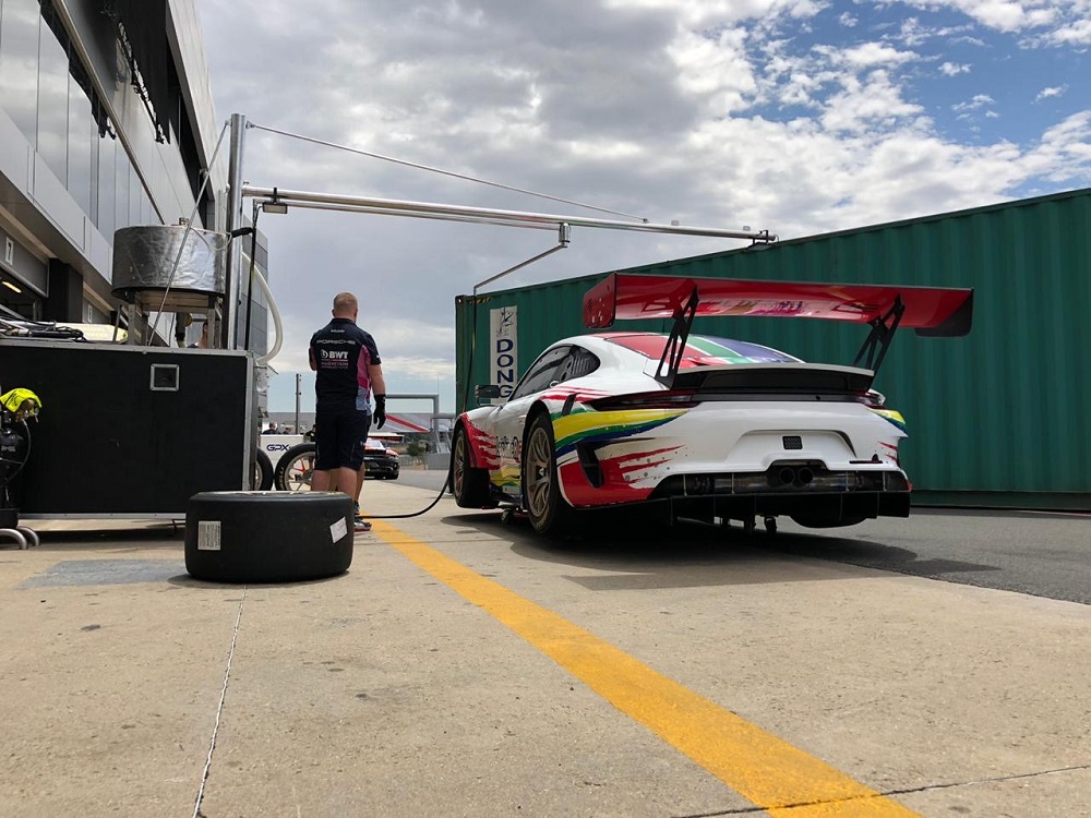Drivers carrying the South African flag are Kelvin and Sheldon van der Linde, Gennaro Bonafede and Jordan Pepper.