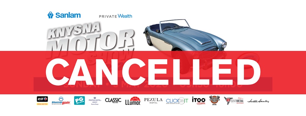 “It is with much regret and sadness that we herewith advise that the Knysna motor show (KMS) planned for May 3 has been cancelled. The influencing factors in arriving at this decision are the banning of gatherings of more than 100 people, as outlined by the President, and the withdrawal of sponsors from the event,” Peter Pretorius, Chief Organiser, Garden Route Motor Cub.