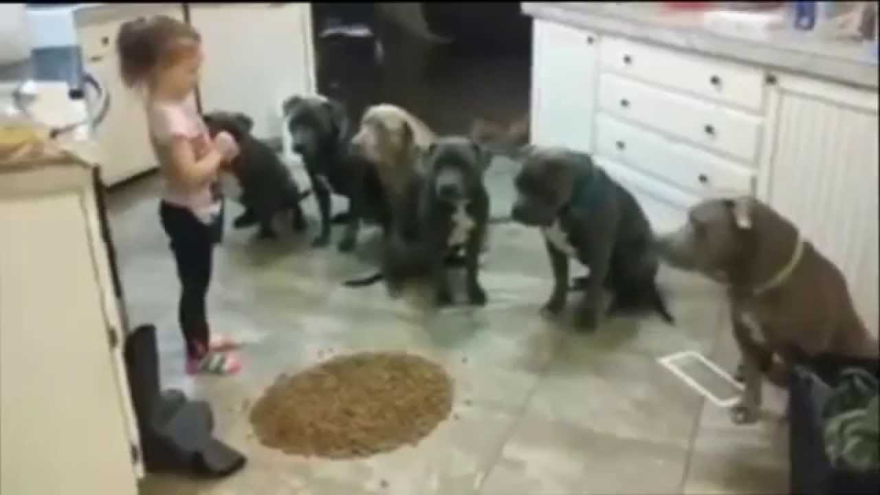 Footage showing a four-year-old girl tending to a pack of six hungry pit bulls alone has caused outrage on social…